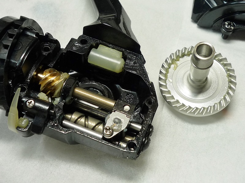 Looking at the number of teeth on the gears, the main gear has 74 teeth and the pinion gear has 12 teeth. If we calculate this, 74÷12=6.166, which means that one rotation of the handle rotates the spool approximately 6.2 times.